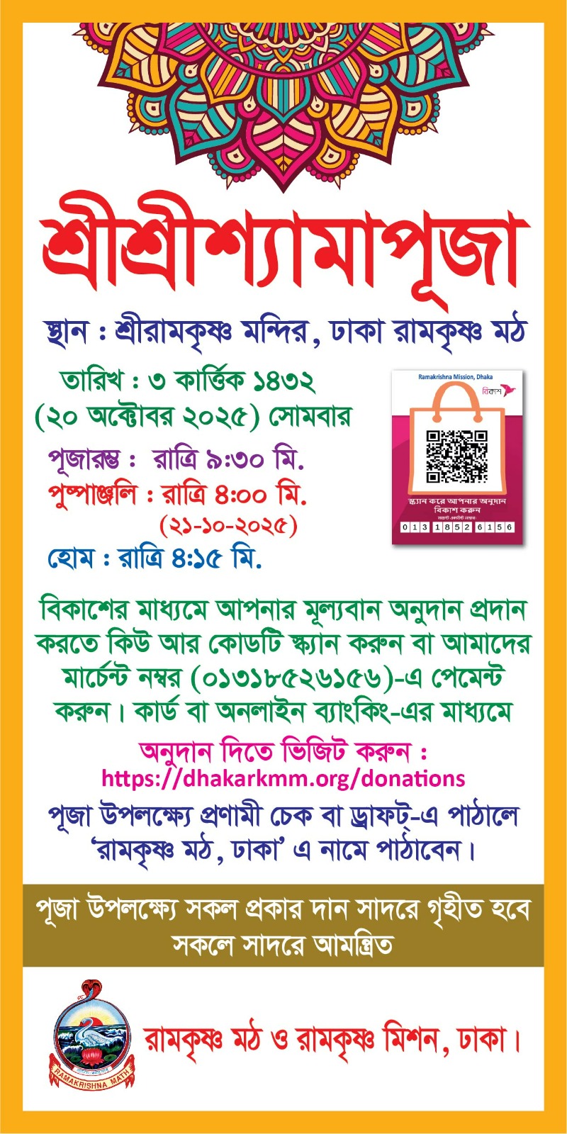 Ramakrishna Mission, Dhaka conducted a Relief Service Program on the occasion of Sri Sri Durga Puja-2024. Total 1050 sharees were distributed among 1050 poor women of the nearby Dhalpur, Gopibag, Rishipara, Tikatuli, Malibag, Golapbag, Shanir Ankhra, Jatrabari and Kazirbag areas of Dhaka Math from 06 October 2024 to 08 October 2024. Additionally, on the occasion […]